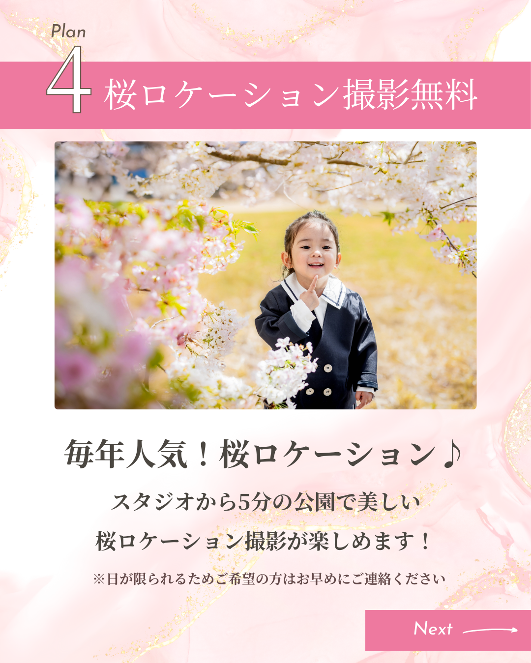 桜ロケーション撮影が楽しめます♪