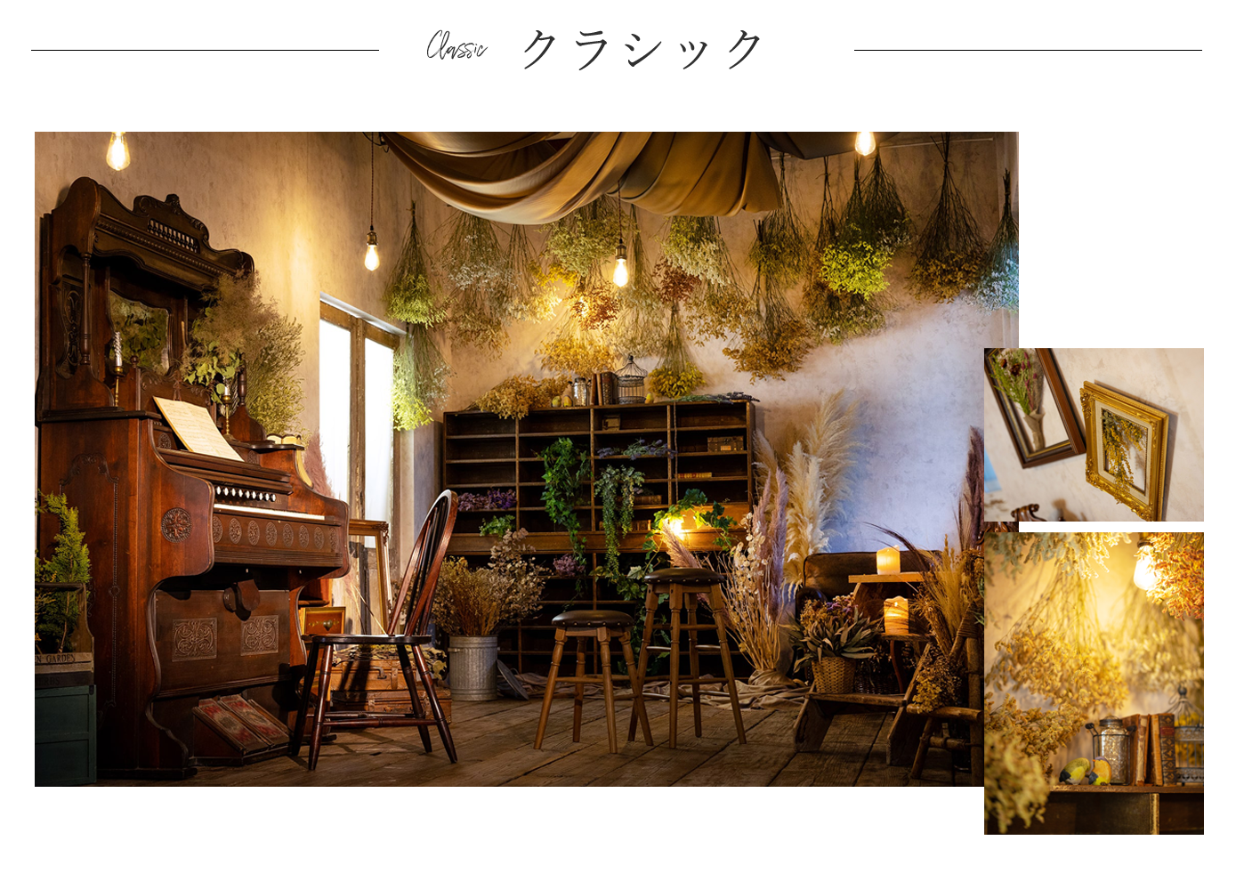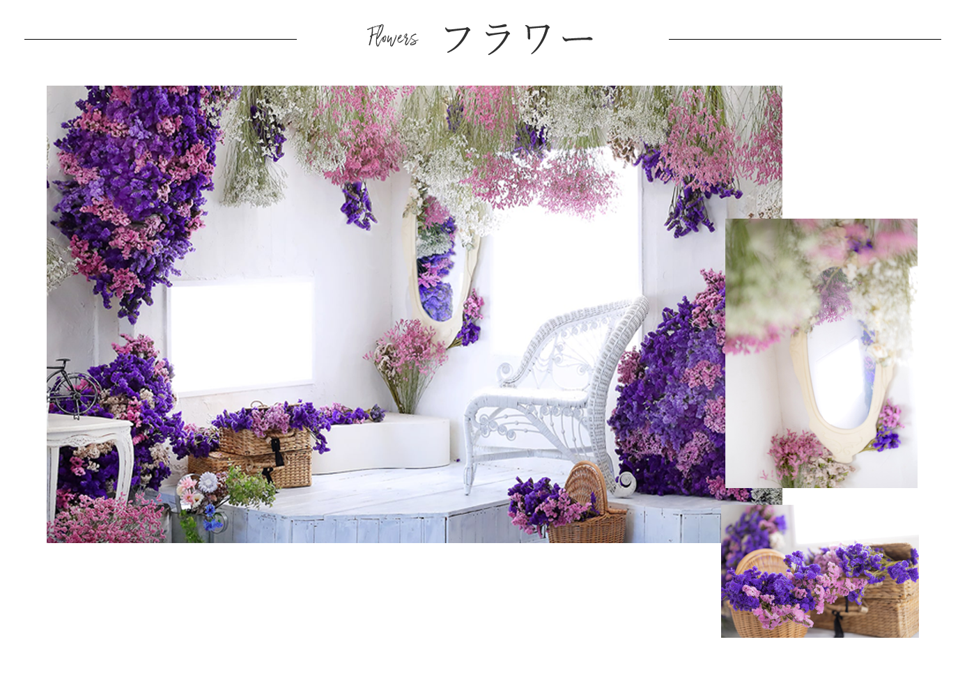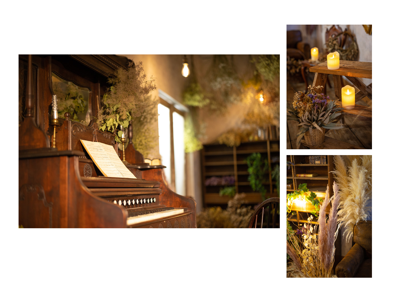 たくさんのドライフラワ―がやさしく空間を包み込みます。